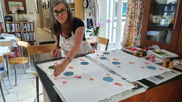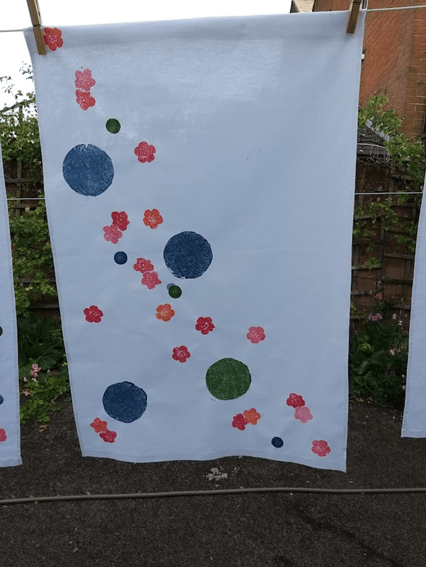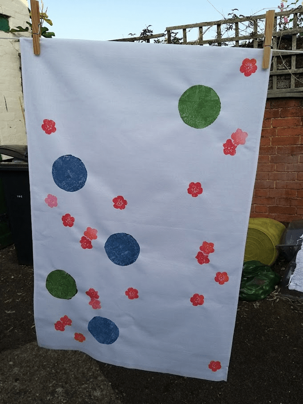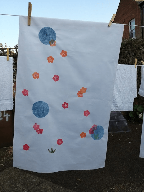 Using linocut, I reintroduced my traditional Japanese designs and colours and hand-printed some cotton kitchen towels.